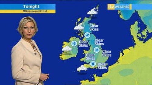 Mantin then started to appear on the ITV National Weather, Channel 5, Sky and on ITV’s This Morning as an occasional reporter. From 25 February 2005 she ceased duties with ITV Anglia, and permanently transferred to the ITV National Weather team, working alongside Martyn Davies and Siân Lloyd.