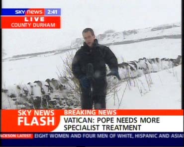 Images of News Presenters and Reporters being hampered by bad weather