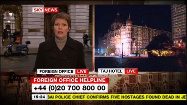 Matt Barbet in London. Alex Crawford, Lisa Holland in Mumbai. Jane Dougall live from the FCO